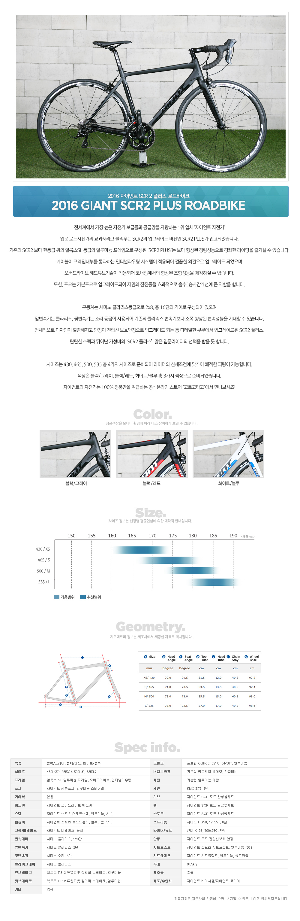 2016 자이언트 SCR2 플러스 로드바이크