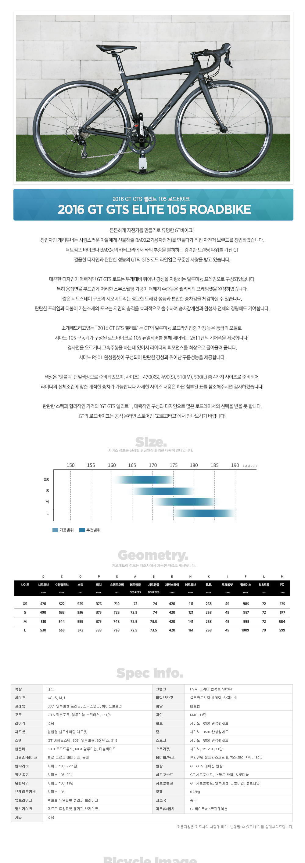 2016 GT GTS ELITE 엘리트 105 로드바이크