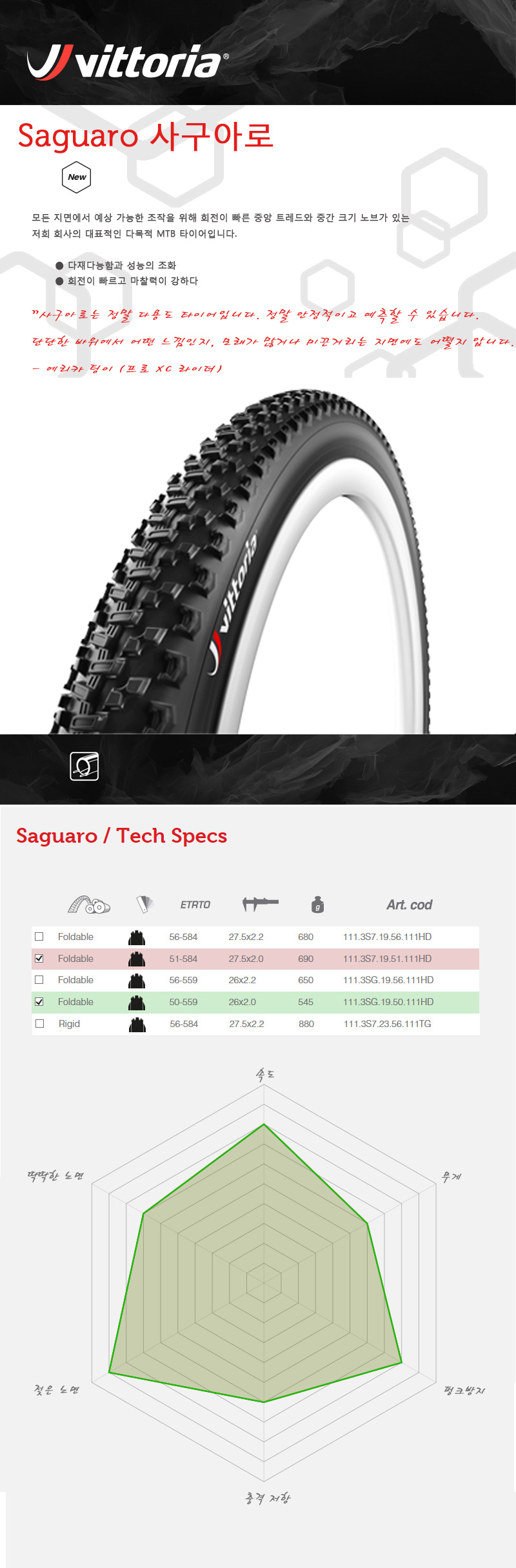 비토리아 사구아로 27.5 x 2.0 인치 다목적 MTB 타이어