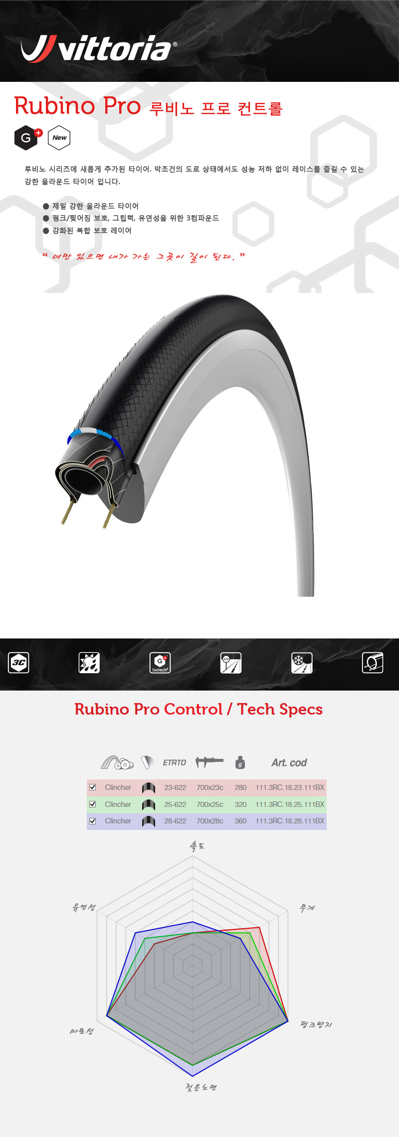 비토리아 루비노 프로 컨트롤 올라운드 타이어 700Cx23