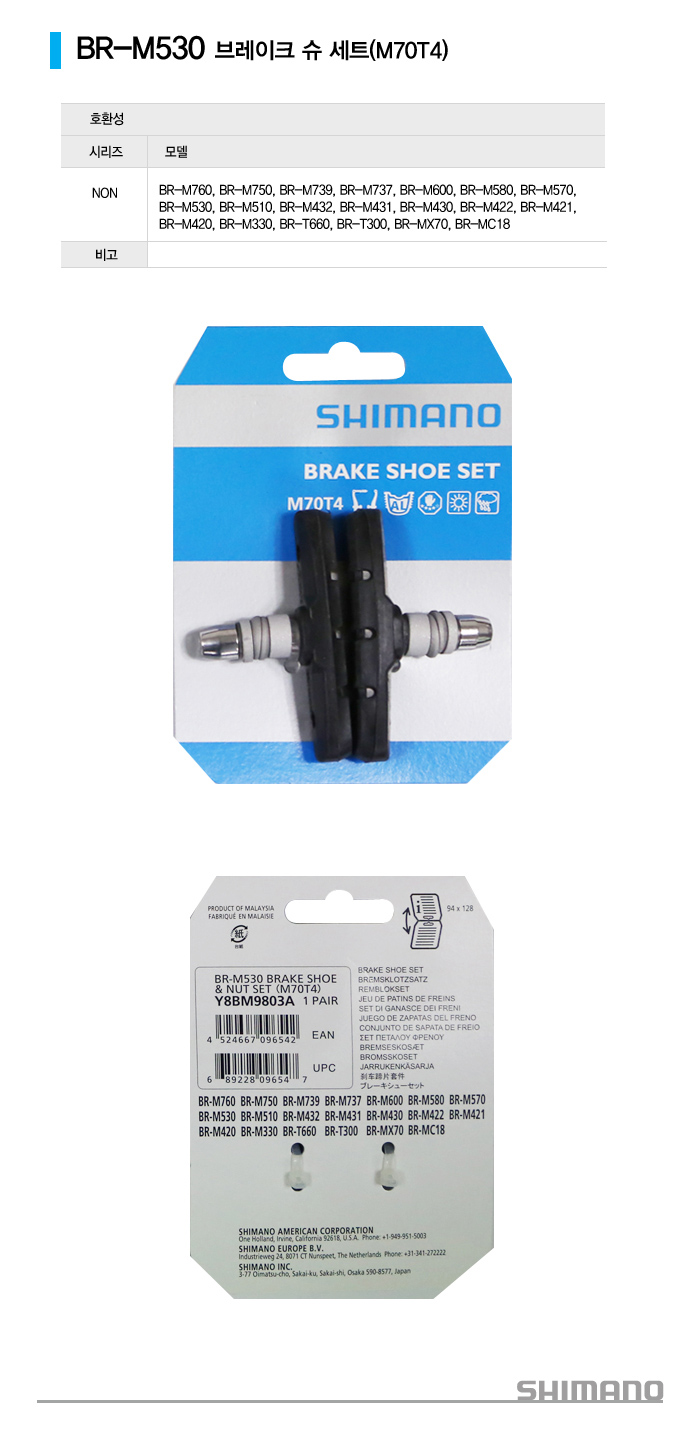 시마노 BR-M530 브레이크 슈 세트 M70T4 (나눅스수입)