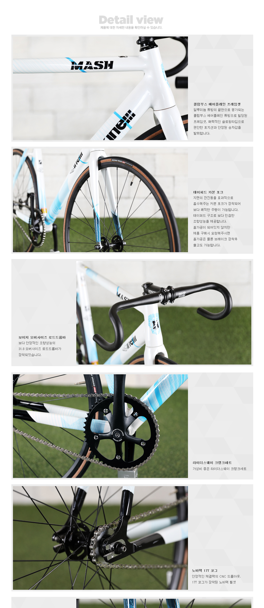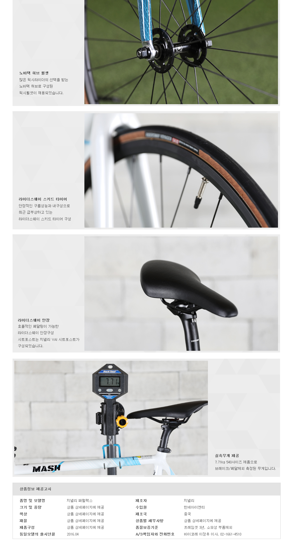 - 수작업으로 조립되고 수차례에 걸쳐 운반되는 자전거 상품의 특성상 불가피하게 발생되는 경미한 스크래치 및 오염, 부품체결 및 볼트장착부위의 도장 크랙.