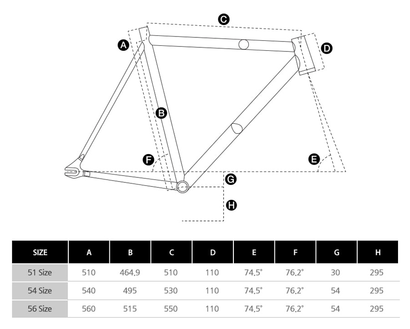 색상은 맷블랙핑크,맷화이트그레이,맷실버네이비,맷마룬레드까지 4가지의 감각적인 색상으로 출시되었으며, 프레임사이즈는 510,540,560 총 3가지 사이즈로 라이더의 신체조건에 맞춘 쾌적한 피팅이 가능합니다.