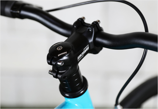 유효탑을 길게 설계하고 헤드각을 줄여 프론트휠과의 페달간섭을 제거한 지오메트리로 초심자용으로 적합하죠!