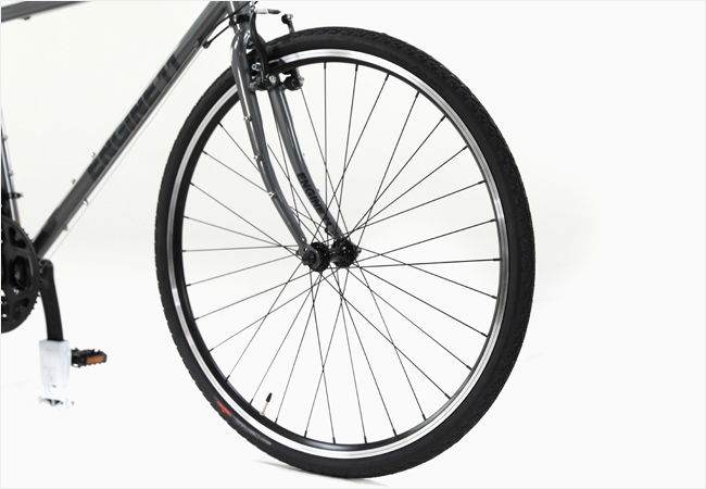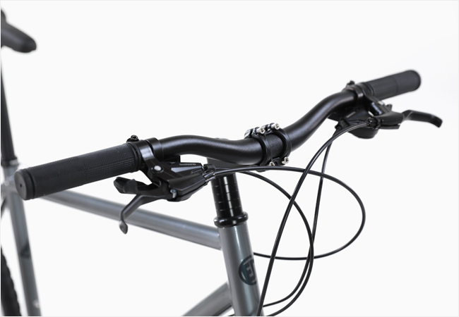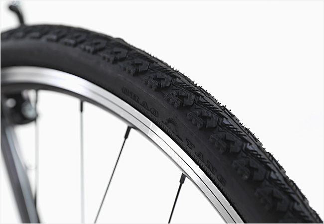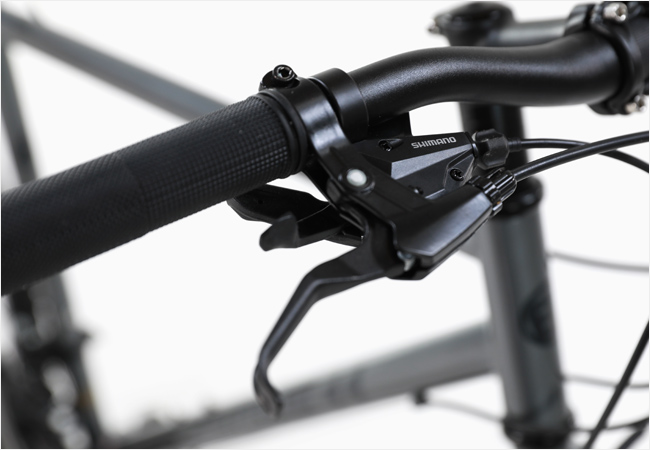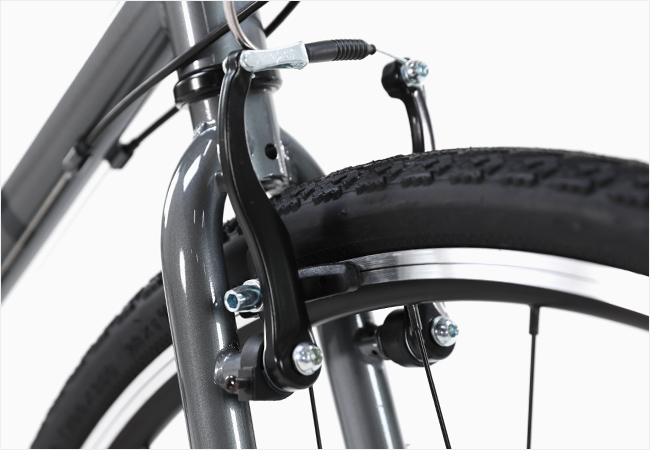 브레이크는 안정적인 제동성능의 V-브레이크를 사용함으로써 큰 사이즈의 타이어가 호환될 수 있도록 구성되었습니다.