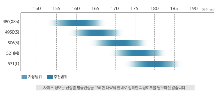 사이즈는 학생분들도 타기좋도록 480(XXS)부터 531(L)까지 총 5가지로 출시되었습니다.