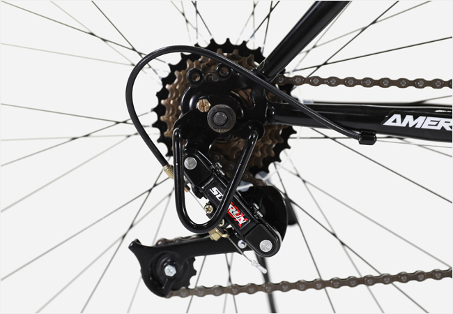튼튼한 스틸프레임과 드롭바 구성의 21단 자전거로 퀼스템에 위치한 더듬이 레버로 변속운용됩니다.
