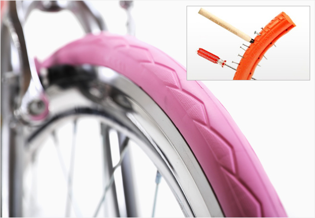 못이 박혀도 주행가능하며, 공기주입이 필요없는 혁신적인 타이어이며,