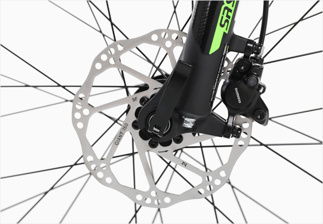 또한 강력한 제동성능의 시마노 M201 유압디스크 브레이크가 적용되어 안전하고 쾌적한 운행이 가능합니다.