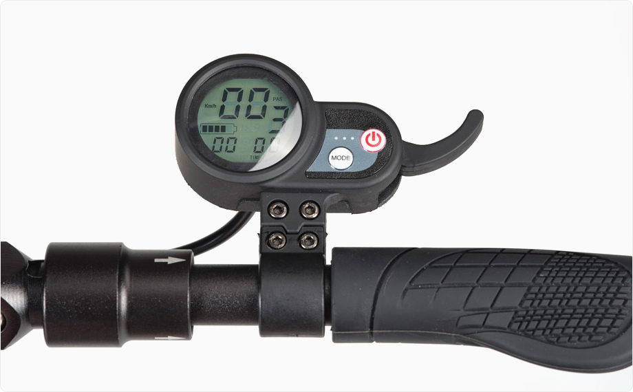 깔끔한 디스플레이를 통해 주행/누적거리, 배터리잔량등의 체크가 가능하며 전면에는 200Lux의 고휘도 헤드라이트가 깔끔하게 장착되어 더욱 안전한 주행이 가능합니다.
