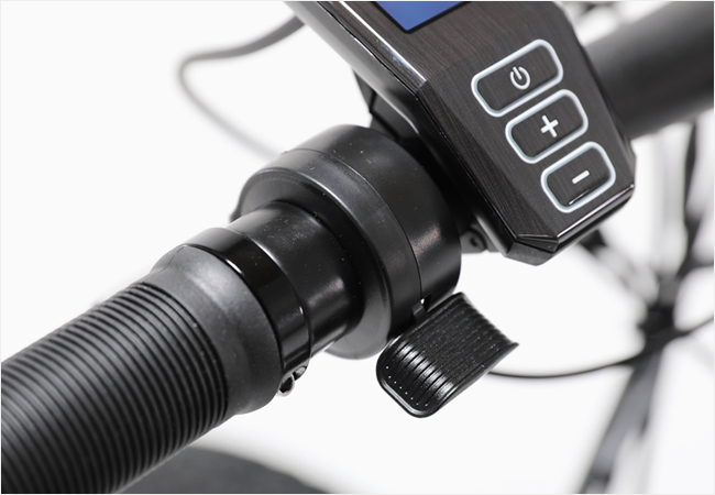 '스로틀겸용' 방식은 위의 PAS 시스템을 사용할뿐 아니라 핸들바에 별도로 장착되는 레버를 통해 페달링 없이도 모터를 작동하게 하여 주행을 즐길 수 있는 방식입니다.