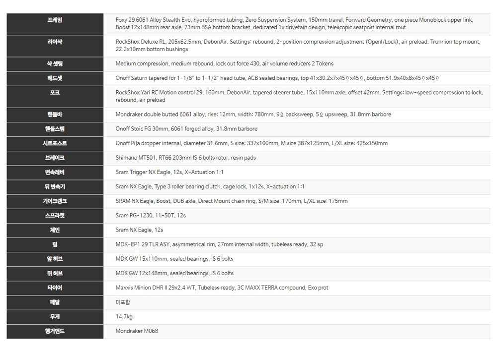 MONDRAKER 몬드래커 폭시 풀 서스펜션 29인치 2020년