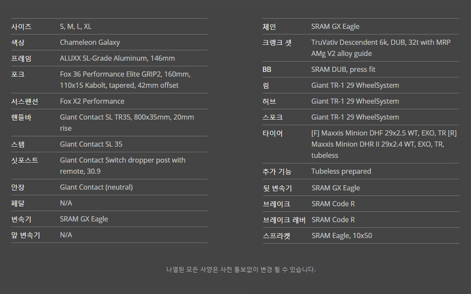 라이더들은 이제 깔끔하게 세팅된 가변 싯포스트, Boost 허브 스페이싱을 적용한 최신 GIANT 휠시스템, 그리고
