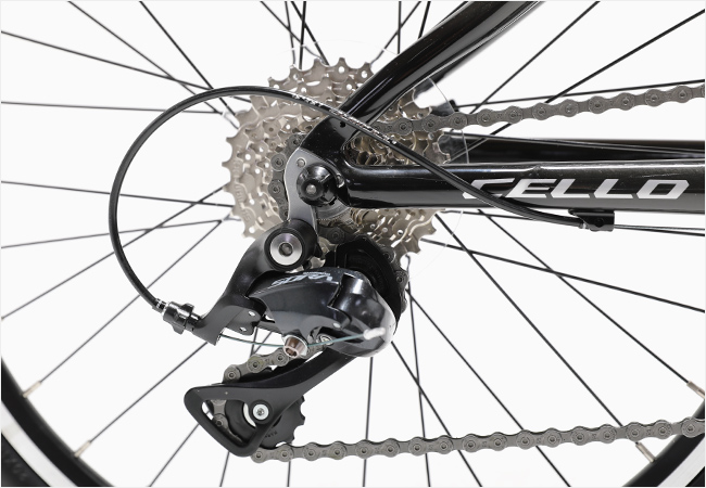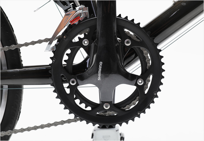 변속시스템은 시마노 소라 그룹셋이 적용되어 폭넓은 기어비를 제공하며, 바퀴가 작은 만큼 52/39T의 체인링을 적용하여 스피드를 내는데 있어 블리함이 없도록 설계되었습니다.