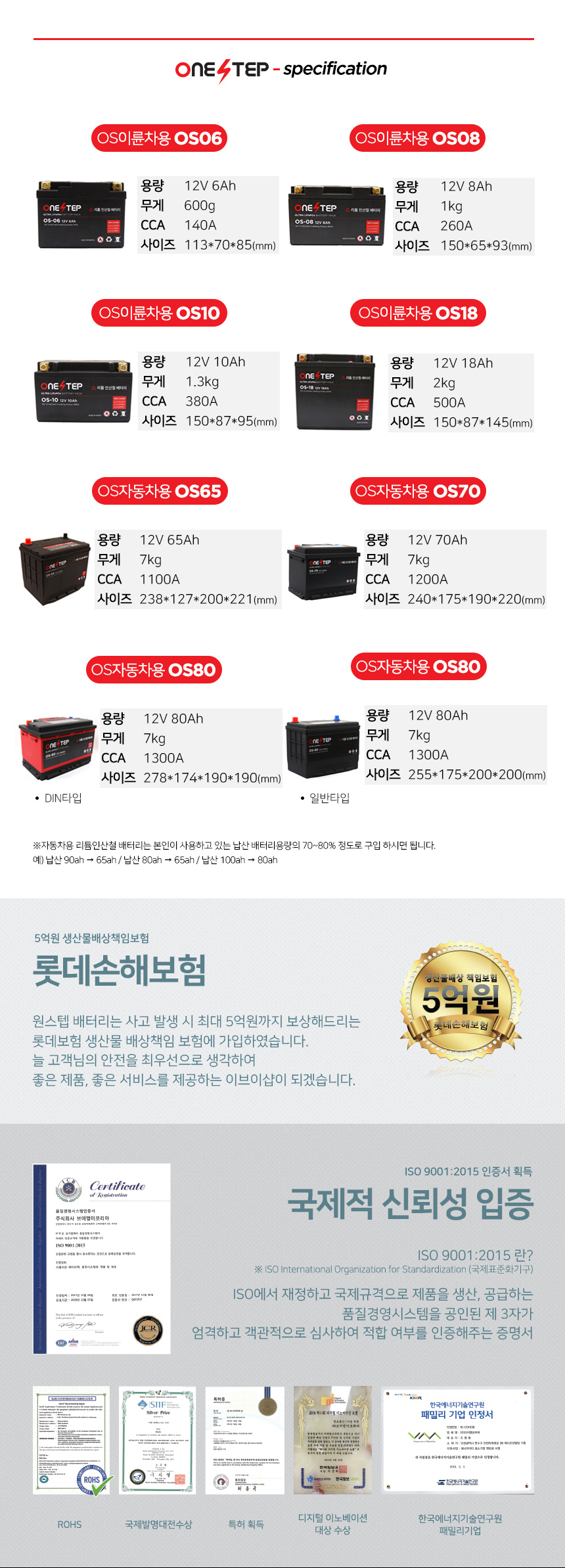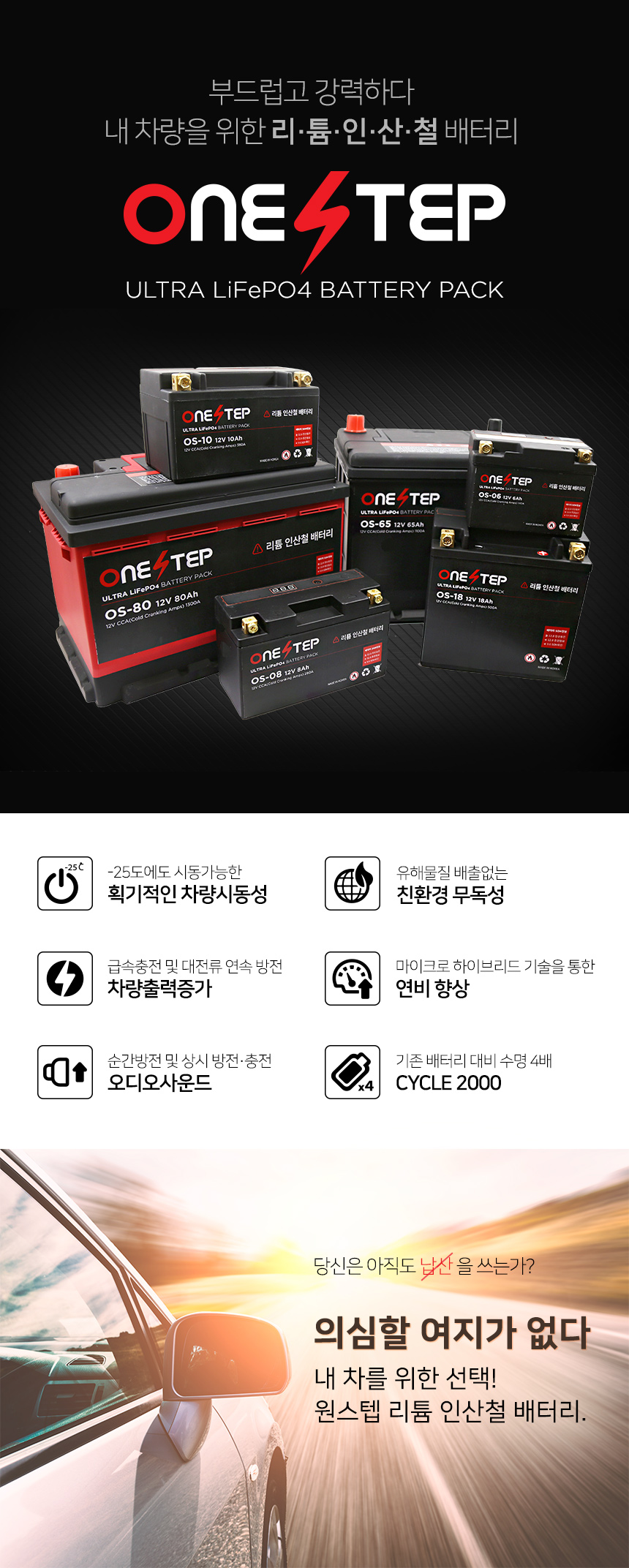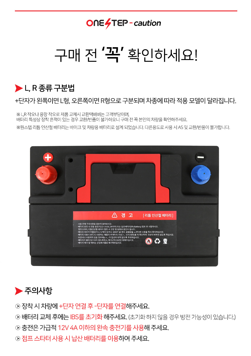 원스텝 자동차 리튬인산철 시동배터리 LiFePO4 80Ah