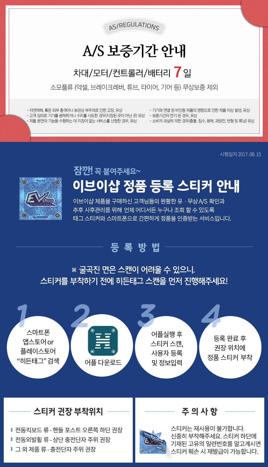 A.무상수리 : 구매일로부터 차체 1년, 부품 6개월(소모성 부품제외)
