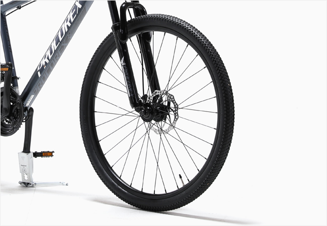 멋진 퀄리티의 프레임과 함께 구성된 서스펜션 포크는 지면의 충격을 효과적으로 흡수하여 안락한 승차감의 편안하고 즐거운 라이딩을 즐기실 수 있습니다.