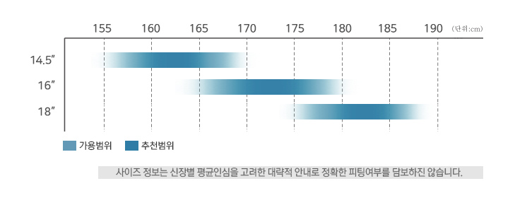 색상은 단일컬러이며 14.5, 16, 18인치 총 3가지 사이즈로 전개되었습니다.
