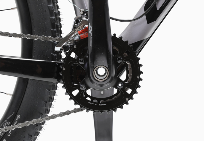 구동게는 시마노 XT 구동계가 적용되었으며 2x12단의 폭넓은 기어배율로 구성되어 있습니다.