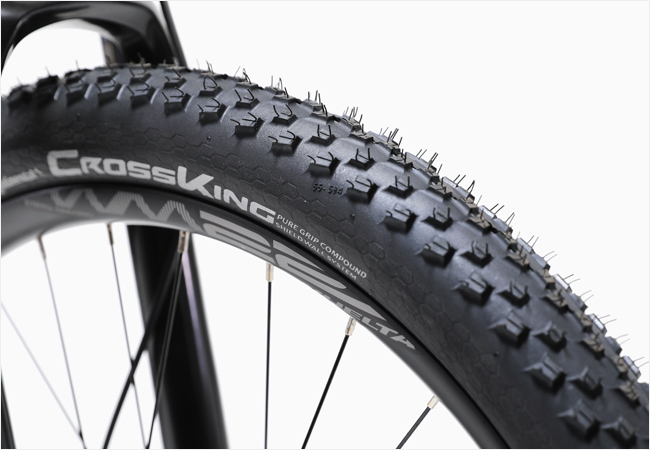 시마노 데오레 허브와 브엘타 27.5 카본림으로 구성된 휠셋은 카본 특유의 주행체감과 만족스러운 경량성능을 함께 누리실 수 있습니다.