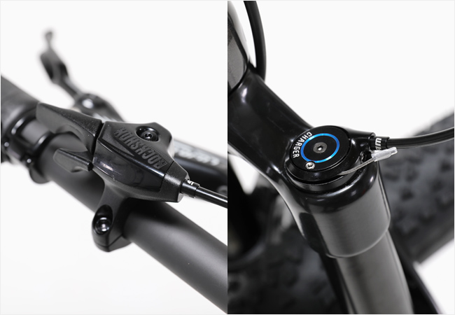 락샥의 에어서스펜션 포크가 적용되어 우수한 리바운드 성능을 제공하며, 핸들바에 장착된 리모트 컨트롤러를 통해 간편하고 빠르게 락아웃 컨트롤을 할 수 있습니다.