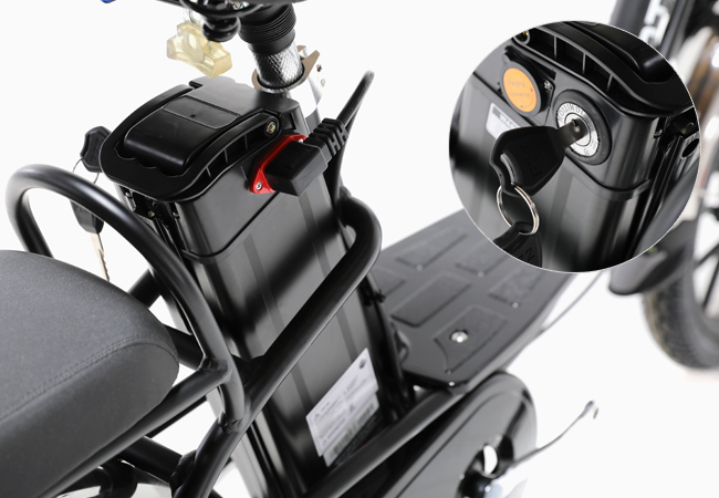 그외에도 배터리와 모터, 컨트롤러에 잠금장치가 구성되어 도난방지 기능도 충실하게 적용되어 있으며, 헤드라이트와 방향지시등의 안전을 위한 유틸리티도 부족함 없이 적용되어 더욱 안전하게 탑승가능합니다.
