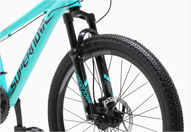 또한 주행중 발생하는 충격을 흡수해주는 서스펜션 포크가 장착되어 안정감있는 쾌적한 라이딩을 즐기기에 좋습니다.