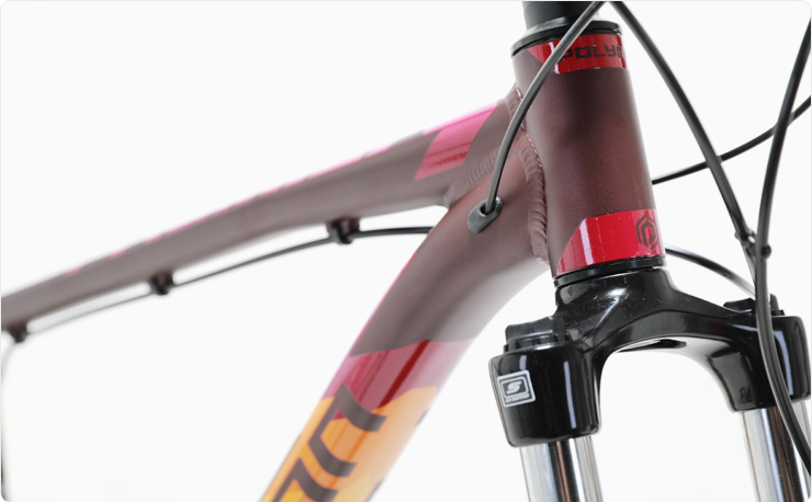 견고한 내구성의 알루미늄 프레임은 민첩하며 경쾌한 주행퍼포먼스를 발휘하며 일반적인 100mm 트레블의 XC 서스펜션 포크보다 20mm 확장된 트레블을 지원하는 선투어 XCM 서스펜션 포크는 오프로드 환경에서 보다 안정감 있는 서스펜션 성능을 제공합니다.