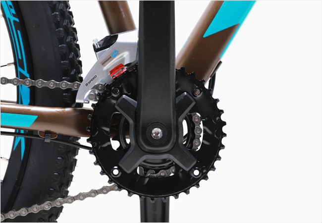 2장의 체인링이 적용된 크랭크는 변속트러블을 완화하며 안정감있는 체인링의 Tooth 구조는 온로드 환경은 물론 거친환경에서 보다 안정적인 동력전달성능을 발휘합니다.