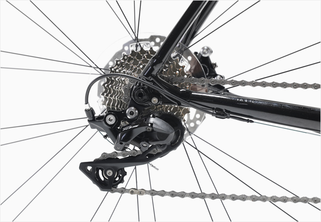 동호인급에서 사랑받는 그룹셋으로 2x11, 총 22단의 기어배율을 지원하며 폭넓은 기어배율을 통해 경사면을 오르는것은 물론 평지에서의 고속주행역시 만족스러운 성능을 체감하실 수 있습니다.
